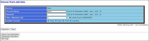 Si [Método de entrada de seguimiento de cuenta] tiene el valor [Contraseña solam.] en el sistema, no olvide registrar la contraseña.
