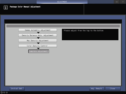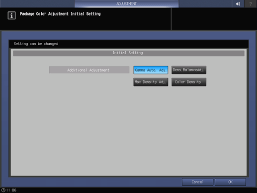 [Aj. bal. dens.] | Añade el ajuste del balance de densidad a una opción de ajuste. Para el ajuste del balance de densidad, la pantalla de operación varía en función de los dispositivos opcionales instalados.