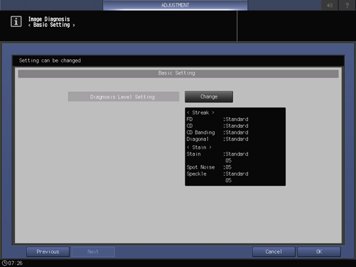 Pulse [Cambiar] para visualizar la pantalla de ajuste del nivel de diagnóstico.