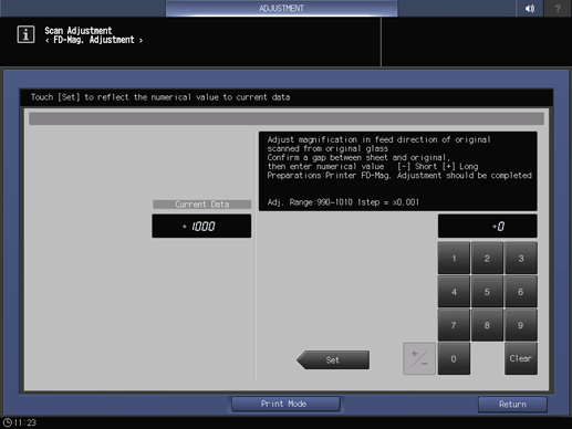 Utilice [+ / -] para seleccionar el signo positivo o negativo del valor numérico. Para cambiar [Datos actuales], pulse [Definir].