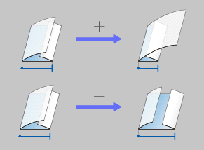 - Para ajustar [Pliegue 1] y [Pliegue 2], debe ajustar primero [Pliegue 1]. [Pliegue 1] y [Pliegue 2] se situarán en función de la posición del borde de papel. El valor de la medida que se muestra en "b" en el paso 5 se cambia aunque se cambie la posición de [Pliegue 1] y [Pliegue 2].