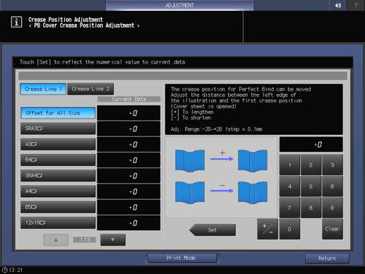 Ajuste la posición de hendidura de la portada de encuadernación a la americana en la Unidad de hendidura CR-101 instalada en la Unidad de grapado en el lomo SD-513.