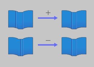 La posición de hendidura de la cubierta de encuadernación a la americana está controlada de manera que la posición de referencia se define para acomodar la anchura del lomo de encuadernación a la americana. Realice este ajuste cuando la distancia desde el borde del papel hasta la posición de hendidura se desvíe del valor estándar tanto en la 1.ª posición de hendidura como en la 2.ª posición de hendidura.