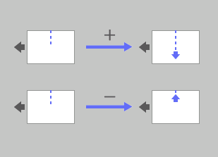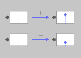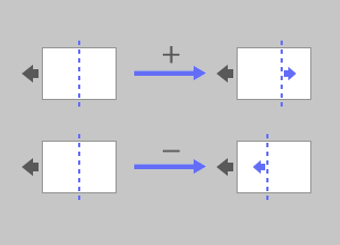 (-) Para desplazar la posición de perforación hacia el borde delantero, (+) para desplazar la posición de perforación hacia el borde posterior