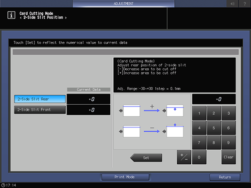 [Rango de ajuste: -30 - +30 1 paso = 0,1 mm]