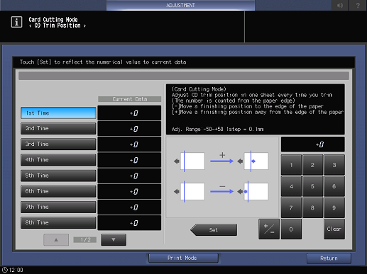 Utilice [+ / -] para seleccionar el signo positivo o negativo del valor numérico. Para cambiar [Datos actuales], pulse [Definir].