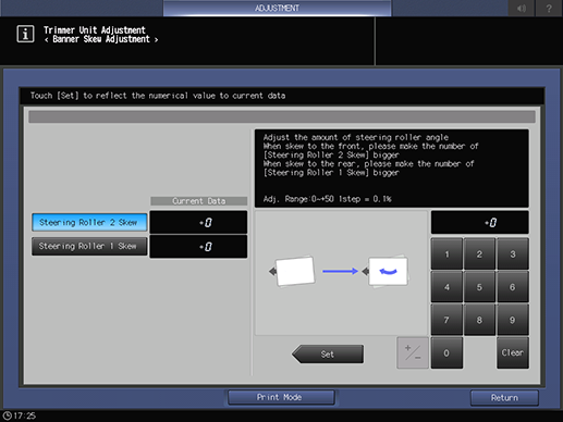Utilice [+ / -] para seleccionar el signo positivo o negativo del valor numérico. Para cambiar [Datos actuales], pulse [Definir].