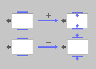 (-) Para reducir el empuje hacia dentro de la placa de alineación, (+) para reducir el empuje hacia dentro de la placa de alineación