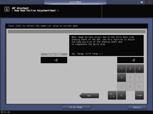 Ajuste > [Ajuste de ADF] > [Aj.posic.lect.inicial(atrás)]