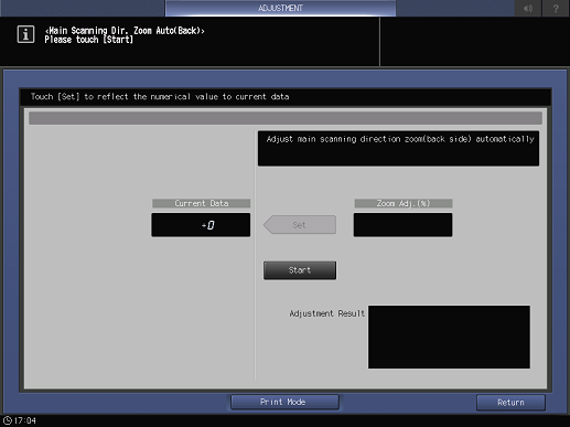 Si el ajuste falla, se muestra [NG] en [Resultado de ajuste]. Realice los ajustes con [Escan.dir.escal.ppal.(atrás)].