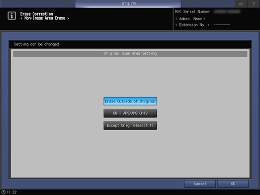 [Activado - APS/AMS sólo] | Borra un área de margen fuera del original solo si está activada la función APS o AMS. |