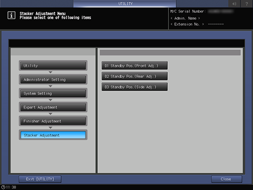 Panel de control - Utilidades/Contadores - [Conf. de administrador] - [Configuración sistema] - [Ajuste avanzado] - [Ajuste unidad de acabado] - [Ajuste apilador]