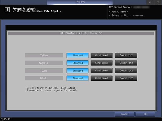 Puede ajustar los valores de tensión alterna (CA) y continua (CC) del polo de neutralización de la primera unidad de transferencia para mejorar los ruidos de imagen, como las ondulaciones y la memoria del fotoconductor.