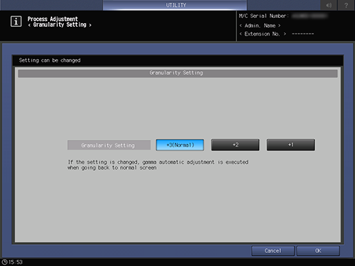 A medida que se define un valor más bajo, el rendimiento del lead-off (un fenómeno en el que el color se convierte en luz en el borde trasero en la dirección de alimentación de una imagen con una diferencia de densidad) se reduce, pero la granularidad aumenta.