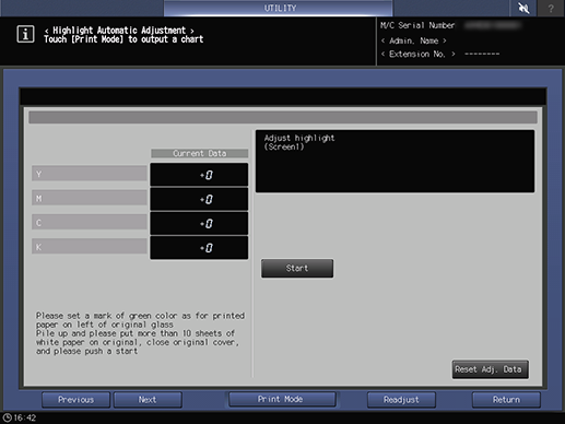 - Normalmente, el ajuste se realiza usando [Aj.aut.offs.gamma impr.]. Utilice [Ajuste gamma de la impresora] para realizar el ajuste fino.
