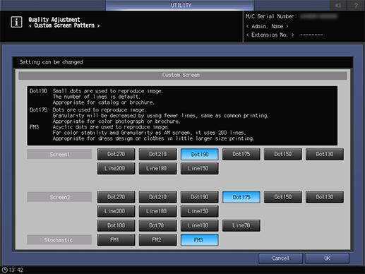 [Dot70] | Trama preparada para imprimir en papel en relieve. Dibuja una imagen con un conjunto de puntos más rugosos (Dot70). Ofrece una excelente estabilidad para la reproducción de curva gamma de la impresora y gradaciones. |