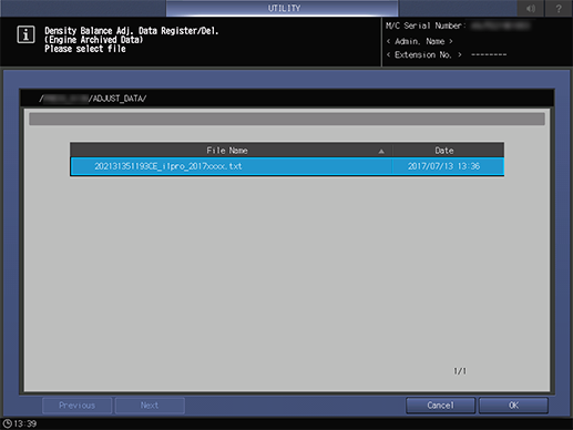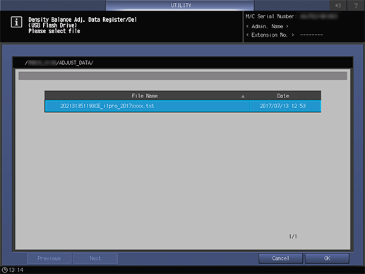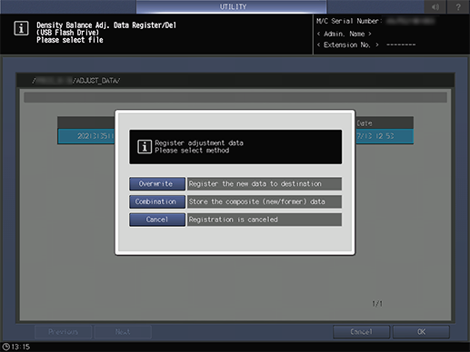 Si selecciona un número ya registrado, se muestra el valor de ajuste del balance de densidad registrado.