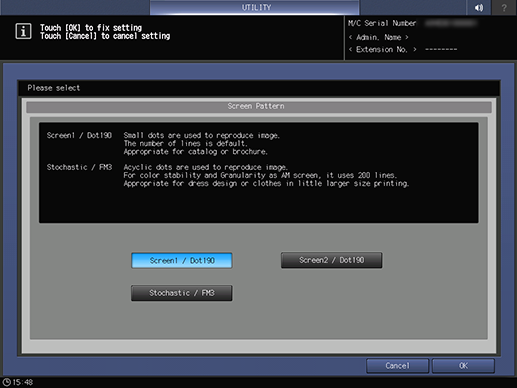 Si el valor de ajuste del balance de densidad que se va a cambiar son datos colorimétricos medidos por el colorímetro, no se podrá cambiar la trama. La opción [Trama] está inactiva y no puede seleccionarse.