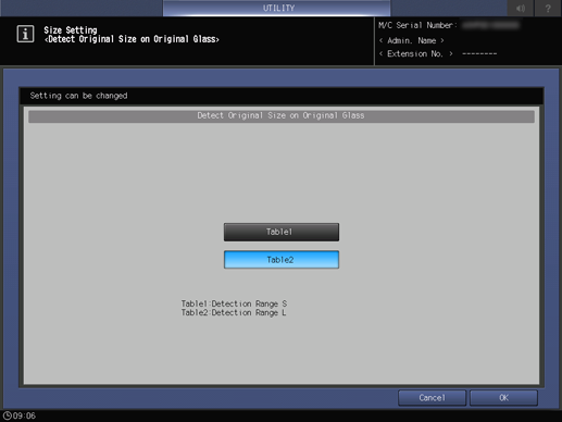 Permite configurar el tamaño del original que desea detectar mediante el Cristal de originales.