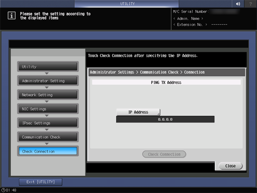[Verif de conexión] | Escriba la dirección IP y compruebe el estado de la conexión. |