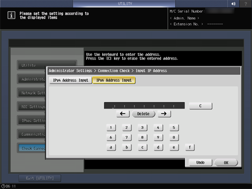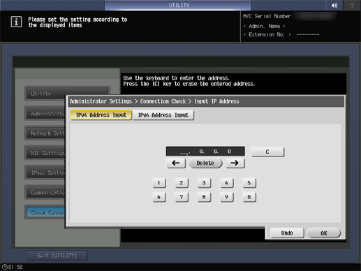 Cuando se pulsa [Deshacer], el valor numérico vuelve al valor previo a las correcciones (predeterminado: 0.0.0.0.).