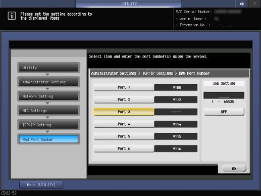 El número de puerto del puerto RAW seleccionado se muestra en [Ajuste tarea].