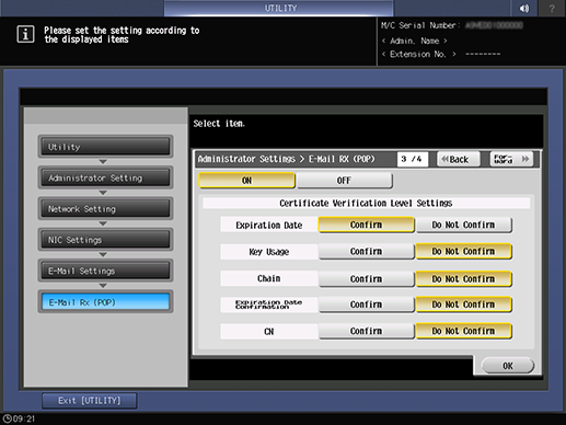 [Utilización de las teclas] | Se comprueba si el certificado se utiliza según el uso previsto aprobado por el remitente del certificado. | |