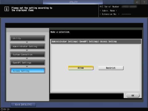 Puede configurar los ajustes que conceden acceso al sistema mediante OpenAPI.