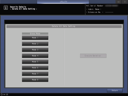 Sobrescriba y elimine los datos del HDD o los datos de la memoria no volátil del sistema con otros datos específicos y desactive todas las funciones del sistema.