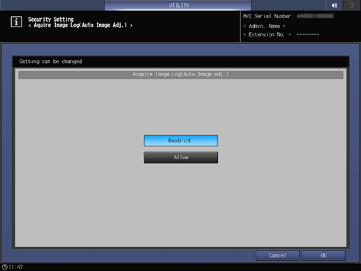 - Esta función está configurada por defecto en [Restringir] para evitar que los centros de servicio adquieran registros sin permiso. Los registros se adquieren entonces únicamente cuando esta función está configurada en [Permitir].
