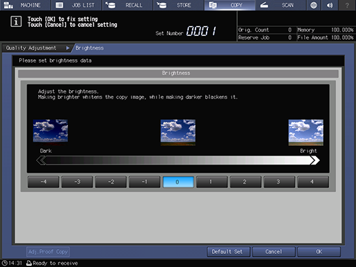 [-4] a [4] | Ajuste el brillo. Con [0] como valor medio, pulse una tecla del lado negativo (-) para oscurecer y una tecla del lado positivo (+) para iluminar. |