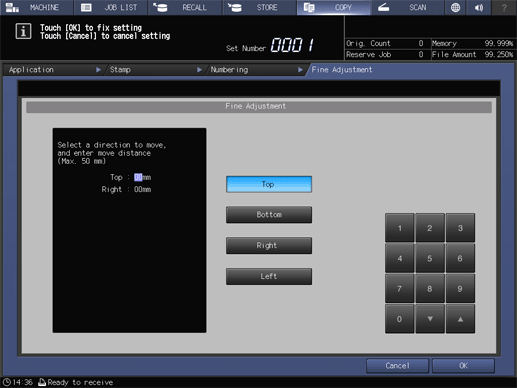 Si se pulsa [,]/[+] se aumenta o reduce el valor numérico en incrementos de 1 mm.