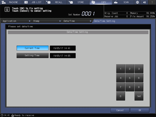 Si selecciona [Configurar hora], utilice el teclado en pantalla para introducir la fecha y la hora.