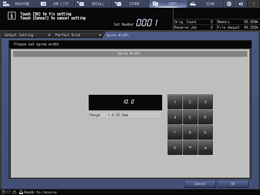 Si se pulsa [,]/[+] se aumenta o reduce el valor numérico en pasos de 0,1 mm.