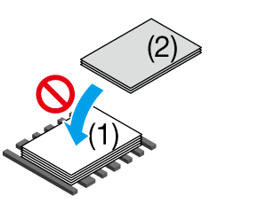 [Permit.(Sig)] | No permite superponer el papel de la siguiente tarea de impresión (2) sobre el papel de la tarea (1) que ya se ha superpuesto en el apilador. ![]() |