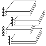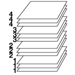 Ejemplo: Impresión de un original de 4 páginas en 3 pilas. ![]() | ![]() | ![]() |