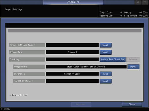[Registrar]/[Edición] | Para registrar o editar la configuración objetivo seleccionada. Cuando hay una configuración objetivo seleccionada, cambia a [Edición]. |