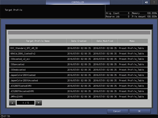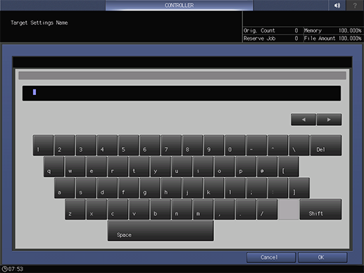 [Borrar] | Elimina la configuración objetivo seleccionada. La configuración objetivo registrada de manera predeterminada no se puede eliminar. Pulse esta tecla para visualizar un cuadro de diálogo y después pulse [Aceptar] para borrar el objetivo. |
