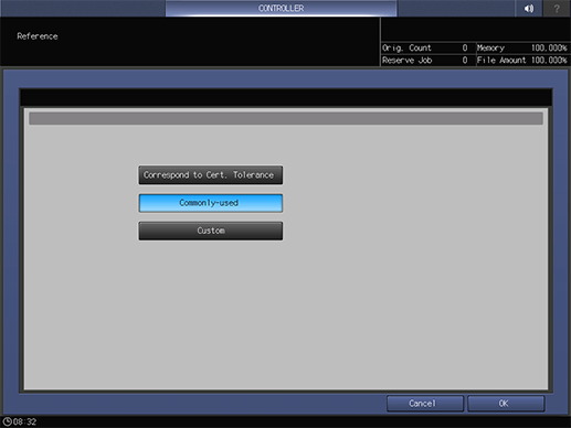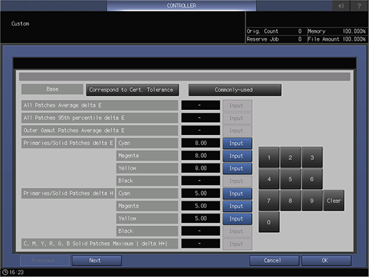 [Personalizado]: Establece cualquier tolerancia para validar los colores basándose en el valor de [Corresponde a toleran. certif.] o [De uso común].