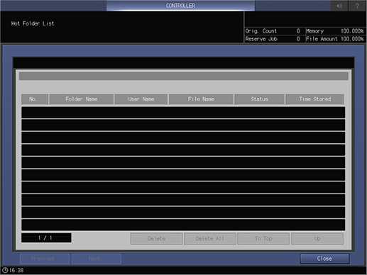 [Arriba] | Mueve la posición de visualización de la hot folder seleccionada 1 puesto hacia arriba. |
