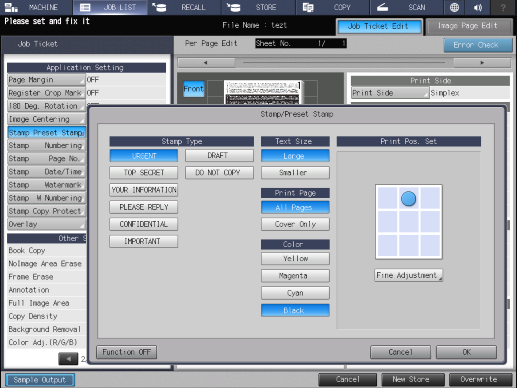 [Tipo de sello] | Tecla de selección [Tipo de sello] | Permite definir el tipo de anotación. |