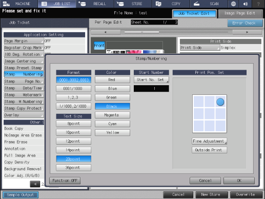 [Número de inicio] | [Nº inicio juego] | Ajuste el número inicial de la numeración (número de serie). Puede introducir hasta 4 dígitos para el número. Rango: de 0 a 9999 |