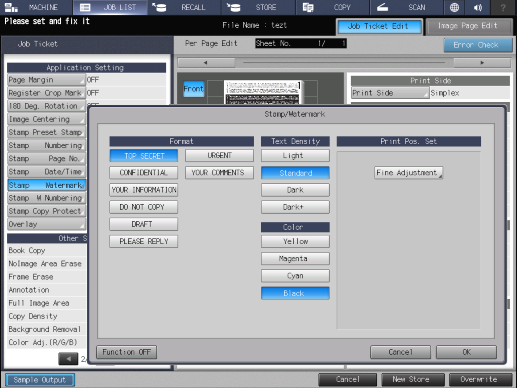 Puede ajustar el formato de los caracteres, la densidad del texto y la posición de impresión.