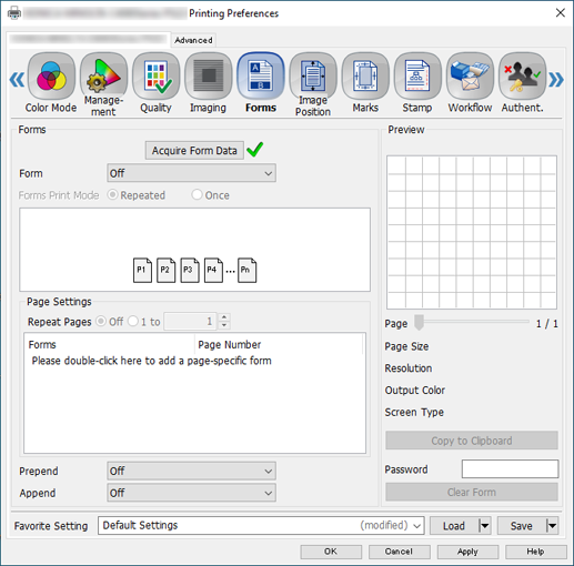 [Repetir páginas] | Establezca el número de páginas para repetir la configuración en la configuración específica de página al imprimir el formulario.