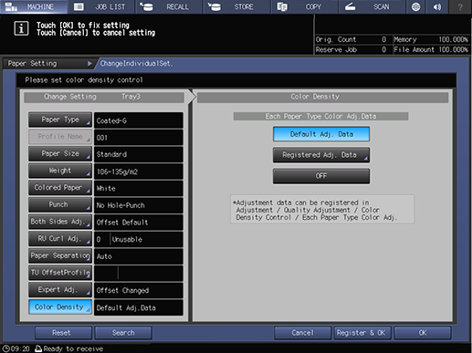 Si está seleccionado [Datos aj.reg.], se desactiva el ajuste de control de densidad de color.