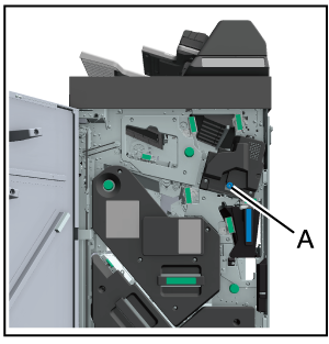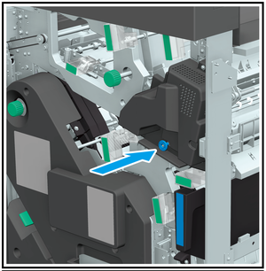 - Empuje la Barra de limpieza por completo antes de cerrar la Puerta frontal de unidad de acabado. La Barra de limpieza puede entrar en contacto con la Puerta frontal de unidad de acabado, lo que puede provocar que se rompa o se doble.