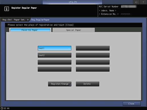 Permite registrar un perfil de papel como [Papel favorito] o [Papel especial]. Es posible asignar el nombre que se desee.