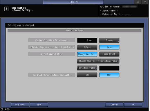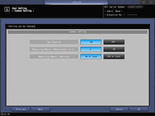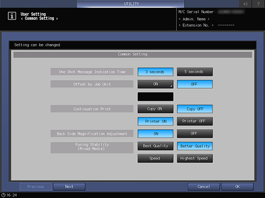 Puede cambiar el tiempo de visualización del mensaje y otros ajustes en el Panel táctil. Puede realizar su trabajo de forma más eficiente cambiando el ajuste según el uso previsto.