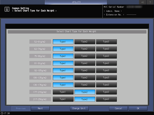 [Aj. nivel compr. papel (Peso)]*1 | Configure el estándar de inspección del peso para la comprobación de papel. | |