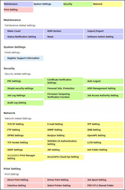 [Configuración PKI] | Puede revisar la información de seguridad y configurar diversos ajustes del Controlador de imagen. |